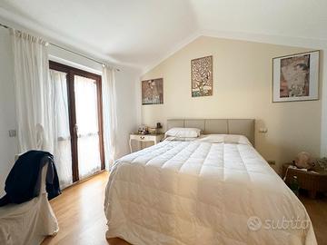 Al piano superiore si sviluppa la zona notte composta da tre camere da letto, di cui una dotata di cabina armadio e terrazza, oltre a un bagno.