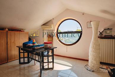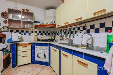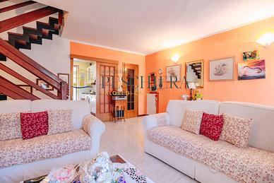 La casa si sviluppa su più livelli cosi composti: al piano terra troviamo un ampio soggiorno luminoso, una cucina separata abitabile con affaccio sull'ampio portico ideale per godersi momenti di relax all'aperto e un bagno di servizio. Salendo al primo piano si accede nella zona notte con due camere matrimoniali, un terzo spazio attualmente adibita a studio e un secondo bagno finestrato.