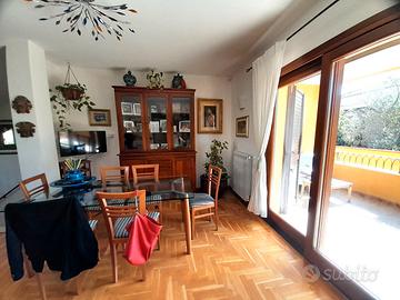 Al piano rialzato troviamo un luminoso salone doppio, una cucina abitabile, un bagno, una veranda e cortili antistante e retrostante. Al piano primo mansardato, due ampie camere da letto e un bagno. Al piano 1° e 2° sottopiano, una grande taverna con cucina a vista, una camera, un bagno, un garage doppio, una cantina e un cavedio.