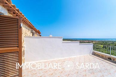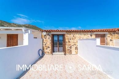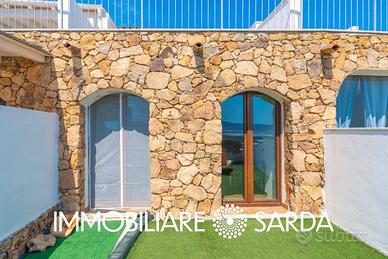 Nel cuore di Lu Fraili di Sopra, una delle località più ricercate del litorale di San Teodoro, proponiamo in vendita una villetta a schiera che coniuga riservatezza, natura incontaminata e una vista mare che spazia dalla splendida spiaggia de La Cinta fino al paradiso naturale di Capo Coda Cavallo. La posizione dominante della casa offre una visuale unica sul mare donando una sensazione di pace che solo certi angoli della Sardegna sanno regalare. Ideale per chi desidera un'oasi di tranquillità, circondato dai profumi della macchia mediterranea, a pochi passi da spiagge da sogno come Lu Impostu, Cala Brandinchi e Punta Aldìa. La villetta si sviluppa su due livelli ed è rifinita esternamente in pietra sarda, in perfetta armonia con il contesto naturale circostante. Gli interni sono curati nei dettagli, con materiali di pregio tra cui spiccano le eleganti scale in marmo di Orosei, che donano luce, calore ed eleganza agli spazi. Attraversando una corte privata d'ingresso, si accede al piano terra, dove si trovano un soggiorno luminoso con cucina a vista moderna e funzionale, un bagno con doccia e una veranda coperta, attualmente adibita a palestra ma facilmente trasformabile in uno spazio relax, studio o stanza per gli ospiti. Da qui si accede a una corte esterna con vista mare, immersa nel verde, ideale per pranzi all'aperto, letture all'ombra o semplicemente per godersi la pace e la bellezza del paesaggio. Completa la proprietà un posto auto privato. Al piano superiore si trova la camera padronale, spaziosa e luminosa, con un angolo riservato che può essere utilizzato come zona lettura, studio o cabina armadio. A completare il piano, un secondo bagno completo e una terrazza panoramica. Un vero angolo esclusivo, dove ammirare l'orizzonte e i colori del golfo dalla mattina fino al tramonto. Lu Fraili di Sopra è una zona residenziale tranquilla e panoramica, immersa nel verde della macchia mediterranea ma a pochi minuti d'auto dal centro di San