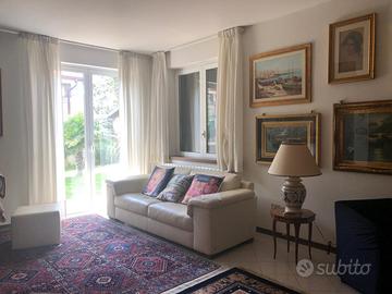 Nella zona residenziale di Borgo Rivo, villetta a schiera di circa 300 mq, ottime condizioni e da subito abitabile, contesto signorile e silenzioso, circondato dal verde. Porzione di bifamiliare, con tre lati liberi e giardino privato con comoda area privata pavimentata, ideale per vivere l'esterno in ogni stagione e garantendo ampi spazi sia interni che esterni oltre a comodità per ogni esigenza. Disposta su tre livelli, al piano terra troviamo un ampio e luminoso salone doppio, ampia camera matrimoniale, ripostiglio, ampio bagno finestrato con vasca, ampio open space cucina/soggiorno con camino e dispensa, uscita diretta sul giardino pavimentato e su di un portico verandato. Al primo piano zona notte con ampio corridoio, quattro ampie camere da letto matrimoniali (attualmente una è adibita a studio - comodo per smart working) con affacci diretti su ampi terrazzi, tutto pavimentato con vero parquet iroko, stanza lavanderia con con affaccio diretto sul terrazzo, due ampi bagni entrambi finestrati con ampie docce. Al piano seminterrato taverna completa. Portone blindato, persiane blindate, impianto allarme, infissi con doppi vetri a taglio termico, zanzariere, impianto fotovoltaico da 6 kW, riscaldamento autonomo con caldaia ibrida - climatizzatori. Il giardino è dotato di impianto di irrigazione automatico.Una soluzione ideale per chi desidera vivere in un contesto moderno, efficiente e ben collegato, senza rinunciare al comfort e alla privacy. Disponibile da subito.