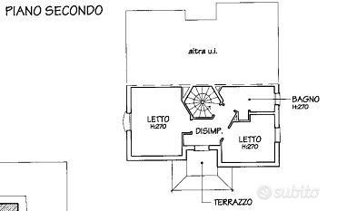 - piano secondo : disimpegno, una camera da letto matrimoniale, una camera da letto singola, secondo bagno finestrato e secondo balcone