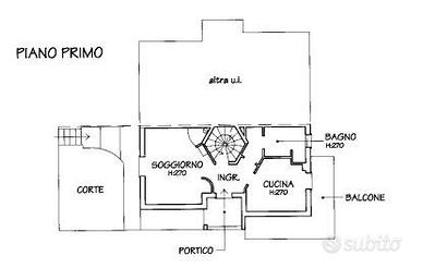 - piano terra/primo : disimpegno, soggiorno con camino, una cucina abitabile separata, balcone e un bagno finestrato con antibagno.