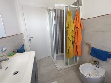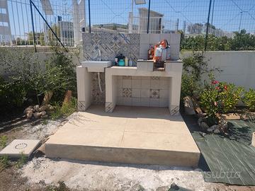 Vendesi bellissima villetta a schiera completamente arredata di circa 70m² su un lotto di 500m² in una delle zone più esclusive di Augusta nel complesso residenziale I Giardini di Brucoli, con una spesa condominiale irrisoria di 1€ al giorno, ovvero 365€ l'anno, il complesso è recintato ed accessibile solo dai residenti attraversando il cancello automatico, composta da: Ingresso su ampio soggiorno-cucina con accesso alla grande veranda attrezzata coperta da pergolato, ampia camera da letto, ampia cameretta e bagno con doccia e lavabiancheria. La villa è di recente costruzione, anno 2022, ed è conforme alle ultime normative antisismiche ed energetiche in Classe A4, impianto fotovoltaico per la corrente elettrica, gode di ottime finiture di pregio dagli infissi a triplo taglio termico alle porte in legno, la porta d'ingresso blindata ed il sistema d'allarme, completano la proprietà giardino con piante ornamentali e fioriere (in fase di ultimazione) con impianto d'irrigazione automatizzato e posto auto dal quale si accede dal cancello carraio. Gli ambienti sono climatizzati