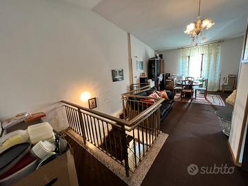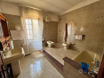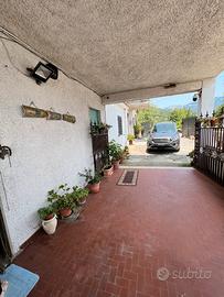 Vendesi abitazione in bifamiliare con veduta panoramica abitazione su due livelli una di mq.189 ca.. La prima è composta da : piano terra ,cucina open space con salone, 3 camere, 2 bagni ( uno al piano terra, l'altro al primo piano nella zona notte), 2 balconi ( uno al piano terra annesso alla cucina, l'altro al primo piano annesso alla camera da letto, portico di mq36 ca e seminterrato di mq22 ca.Al piano primo : cucina+sala, 1 bagno, 2 stanze + corridoio, al secondo piano: salone molto grande, 2 camere da letto, 1 camera matrimoniale, un ripostiglio e un bagno, completamente rivestito in moquette,secondo piano con scala a vista. Casa con corte di proprietà recintata ( da completare ) con cancello a 2 ante, dotata di fibra, parabola, allarme, impianto telecamere, stufa a pellet, condizionatori e riscaldamento a gas.