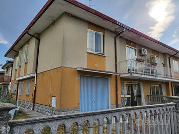 Migliaro, comoda ai servizi villetta in contesto bifamiliare da rimodernare con giardino su tre lati, così disposta: al piano terra doppio garge, tavernetta, una stanza uso diverso, bagno, androne d'ingresso con scala di accesso al piano primo, ampio soggiorno, cucina abitabile, bagno, due camere da letto matrimoniale,