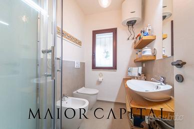 La proprietà, sviluppata sul piano terra, si caratterizza per ambienti spaziosi e molto luminosi, grazie alle ampie vetrate della veranda che permettono di avere una continuità tra interno ed esterno. La cucina, separata e dotata di isola centrale, è ampia e funzionale: perfetta per chi ama cucinare e ricevere ospiti. La zona notte comprende una camera da letto matrimoniale e un bagno finestrato con box doccia.