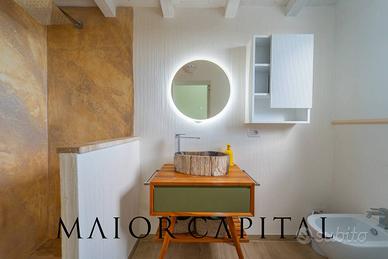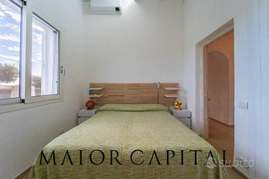 La villa, sviluppata interamente al piano terra, è rifinita da materiali di alta qualità, che garantiscono unelevata funzionalità e comfort. Laccesso alla proprietà avviene tramite unampia veranda coperta e abitabile, che conduce a un luminoso soggiorno con una zona dedicata alla sala da pranzo. La cucina, separata e generosa negli spazi, è dotata di una pratica penisola che permette di ottimizzare la fruibilità degli ambienti, rendendola ideale per luso quotidiano. La presenza di un soppalco offre unulteriore area da poter utilizzare come studio, zona lettura o spazio multifunzionale. La zona notte è composta da due camere matrimoniali, ampie e ben illuminate, e da due bagni rifiniti con eleganti elementi in porcellana. Gli ambienti interni sono impreziositi dalla presenza di un pavimento effetto legno, che dona calore e raffinatezza.