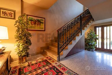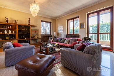 Rif: 21761180-2 Villa bifamiliare degli anni 70, caratterizzata da unarchitettura moderna e da finiture di pregio, immersa in un magnifico giardino privato di oltre 2.000 mq. Limmobile si presenta in buone condizioni generali, mantenendo intatto il fascino dellepoca e offrendo al contempo interessanti possibilità di personalizzazione. La proprietà è composta da due appartamenti, rispettivamente di 130 mq e 214 mq, entrambi situati al primo piano e caratterizzati da ambienti ampi, luminosi e ben distribuiti. A completare la proprietà troviamo una spaziosa taverna, un loggiato, vari locali accessori, un box triplo, una cantina per veri intenditori di vino, caratterizzata da temperatura e umidità naturalmente ideali che offre lo spazio perfetto per l'invecchiamento delle bottiglie e unarea riservata e coperta dedicata al barbecue, ideale per momenti conviviali allaperto. Una soluzione ideale per chi cerca una residenza di prestigio, immersa nel verde, con grandi spazi e potenziale abitativo versatile.