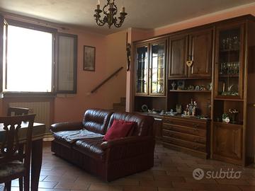 Casa disposta su due piani con grande cortile e giardino su due lati.