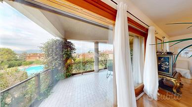 Rif: 33091035-490 Classe energetica: E rif. EB 035-490 DESENZANO DEL GARDA "la Città del Lago" . Vendita esclusiva - Villa di testa di alto standing in posizione irripetibile, tra centro e spiagge.. una Villa che rappresenta il meglio di Desenzano: posizione, privacy, bellezza e prestigio. In una delle location più prestigiose e ricercate, a pochi passi dal centro e dalle splendide spiagge, proponiamo una villa, immersa in un parco lussureggiante con ampia piscina e servizio di custode. Una proprietà unica, elegante e riservata, che domina il resort con charme e vista esclusiva. L'ascensore interno collega comodamente tutti e tre i piani, garantendo massima praticita'. Zona Giorno Eleganza, ampiezza e vistaIl piano principale accoglie un'ampia zona living scenografica, caratterizzata da grandi vetrate che incorniciano la vista sul parco e sulla piscina e regalano un suggestivo scorcio di lago. Da qui si accede a un ampio terrazzo coperto, perfetto per momenti di relax o convivialità. La zona giorno è completata da: Cucina separata, funzionale e elegantemente progettata;Bagno di cortesia, ideale per ospiti e per mantenere la zona notte indipendente. Zona Notte Comfort, privacy e verdeAl piano terra, direttamente sotto la zona giorno, si sviluppa la raffinata zona notte, composta da: Tre camere matrimoniali, di cui una con bagno en suite;Secondo bagno a servizio del piano.Lintero livello è circondato da un splendido giardino privato, unoasi riservata che dona continuità tra gli interni e la natura circostante. Piano Interrato Funzionalità e spazi esclusiviIl livello inferiore ospita ambienti di servizio e comfort: Taverna ideale come area relax, intrattenimento o fitness;Caveau di sicurezza;Cantina;Lavanderia;Box doppio con accesso diretto. Finiture e design. La villa vanta finiture di lusso, materiali pregiati e una cura del dettaglio impeccabile. Ogni elemento architettonico contribuisce a creare un ambiente elegante, moderno e...