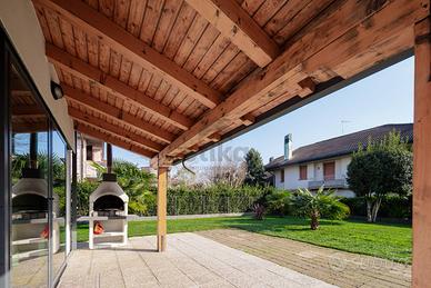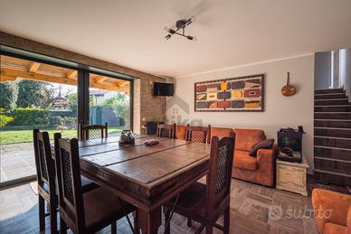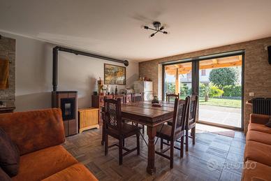 Rif: ER-26010 Classe energetica: A1 VILLA BIFAMILIARE- MONASTIER DI TREVISO L'Agenzia immobiliare Etika ha il piacere di proporre in vendita una meravigliosa villetta abbinata, totalmente ristrutturata e pronta per essere abitata. La casa è disposta su due livelli, al primo piano ci accoglie un ampio e luminoso salotto con caminetto, la cucina è separata ed è fornita di elettrodomestici di ultima generazione. Sempre al primo piano troviamo tre camere matrimoniali con metrature generose e il primo bagno con doccia. Al piano terra, due grandi locali, comodi da sfruttare come magazzino o stanze hobby, il secondo bagno con doccia e una terza stanza che affaccia sulla pompeiana del cortile privato. Questo locale è stato pensato come secondo salotto, infatti è stata appena aggiunta una graziosa stufa a pellet, che rende, grazie anche alle vetrate che danno sul giardino, l'ambiente molto confortevole e rilassante. La casa è stata ristrutturata sia esternamente che internamente negli ultimi anni, ogni stanza si presenta curata e ben mantenuta. Troviamo pavimentazione in parquet, aria condizionata (spit nuovi) e impianto di allarme. A completare la proprietà, un garage e una lavanderia. Si fa presente ai gentili interessati che l'immobile verrà consegnato completo di arredamento come da foto. L'immobile situato nel quartiere residenziale del centro di Monastier, è comodo a tutti i servizi ma offre anche tanta tranquillità e privacy. Rif. ER-26010 Prezzo: 345.000 IMPORTANTE: si avvisa la spettabile clientela che le caratteristiche tecniche, disposizione interna e gli accessori indicati potrebbero in alcuni casi essere diverse dall'effettivo stato di fatto dell'immobile. A causa delle difformità dei dati pubblicati dai vari portali, l'AGENZIA IMMOBILIARE declina ogni responsabilità per eventuali involontarie incoerenze, si precisa che le descrizioni sopra riportate non rappresentano alcun impegno contrattuale. Per garantire la privacy, l'indirizzo...