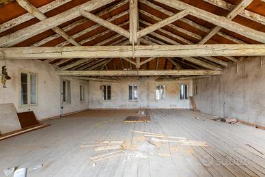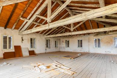 Il secondo piano invece, che conta 110mq, è accessibile dal primo piano tramite un'originale scala a chiocciola, vanta una splendida travatura a vista e delle capriate d'epoca. Grazie all'altezza abitabile e alla generosa metratura, questa zona della casa si può adibire a piacere, ad esempio a mansarda, palestra o sala giochi.