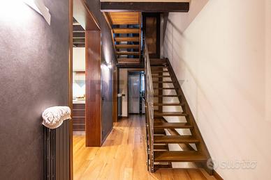 Gli ambienti si distinguono per finiture di pregio come le travi a vista, i pavimenti in legno e dettagli darredo su misura che conferiscono carattere e calore allabitazione.