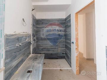 Al piano semicantinato, destinato a zona notte, si accede da scala in muratura posta su zona living e scala esterna, composta da 2 camere da letto con annesso servizio e porta finestra su spazio esterno terrazzato, camera patronale con cabina armadio e servizio con doccia.