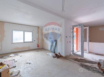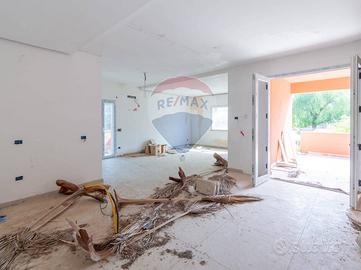 La porzione di destra, invece, risulta così composta: ingresso da porticato su zona living cucina salone pari a 4 vani, vano da adibire a dispensa e servizio di rappresentanza. Da scala interna in muratura si accede al pian semicantinato adibito a zona notte con 3 camere da letto, servizi con doccia.