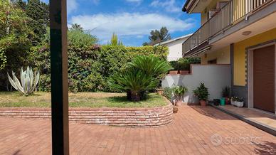La villa con ingresso indipendente offre il benessere di un giardino curato e la meraviglia di un terrazzo con vista mozzafiato sul mare.