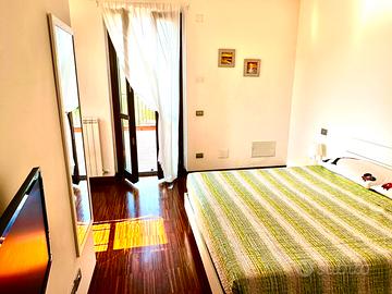Primo piano camera matrimoniale spaziosa, bagno com finestra , doccia e lavatrice.