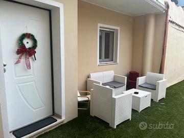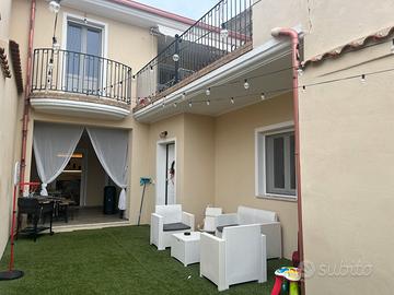 Completa l'abitazione un cortile di 80 Mq, arredato e ricoperto accuratamente con erba sintetica da 5cm, e un comodissimo loggiato di circa 11 mq, anch'esso arredato e collegato alla cucina, permettendo quindi di trascorrere comodamente pranzi e cene all'aperto.