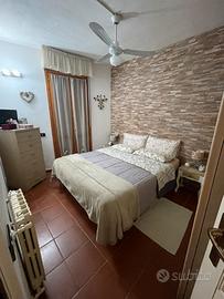 Primo piano con bagno (doccia), due camere da letto, balcone chiuso con vetrate.