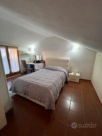 Secondo piano mansardato con camera da letto, bagno (vasca) e balcone.