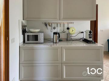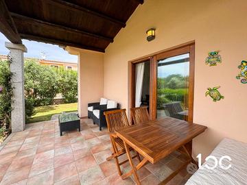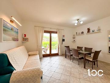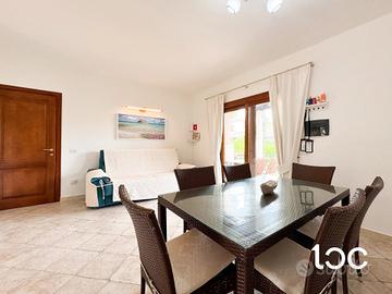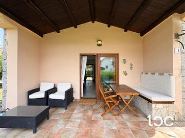 All'interno troviamo un'accogliente zona giorno con angolo cottura, una camera matrimoniale, una seconda camera doppia e un bagno finestrato. La villetta viene venduta completa di arredi, dotata di aria condizionata, barbecue e posto auto privato.