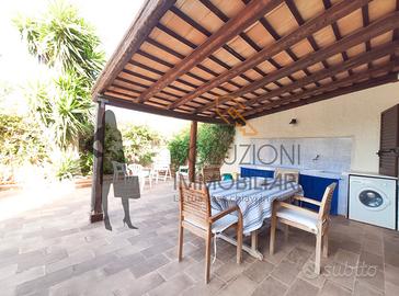 Completano la proprietà una meravigliosa veranda esterna composta da pergolato in legno con cucina in muratura e zona barbecue.