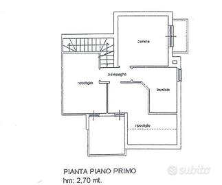 Al piano primo invece troviamo una camera con balcone privato, un ripostiglio grande adibito a camera e un secondo ripostiglio che potrebbe essere una stanza studio o una lavanderia, e un bagno. I due ripostigli affacciano su un bel terrazzino con vista aperta.