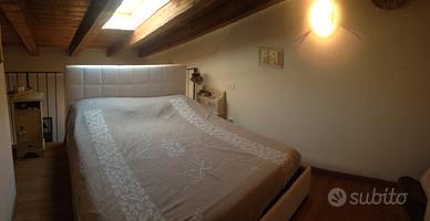 primo piano soppalcato con due camere matrimoniali, ingresso e bagno con doccia illuminato da tre vasistas.