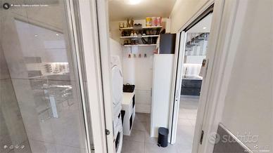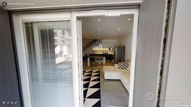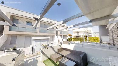 Proponiamo in vendita una prestigiosa porzione di villetta a schiera di recente costruzione. Situata vicino a tutti i servizi, nel contesto residenziale di Piazza Milano, a poche decine di metri dalla spiaggia, è una soluzione ottima sia per chi cerca una casa da vivere tutto l'anno, sia per chi sta cercando un appartamento estivo mantenendo tutte le comodità di casa propria. Dotata di ogni comfort e arredata con gusto, la villetta è distribuita su due livelli cosi composti: al piano terra troviamo un ampio e luminoso soggiorno con cucina a vista, disimpegno adibito a lavanderia e bagno. Una grande porta finestra conduce al giardino privato arredato per poter trascorrere piacevoli momenti in compagnia all'aria aperta. Al piano primo sono presenti due camere matrimoniali mansardate e un secondo bagno completo di box doccia. La soluzione proposta dispone di riscaldamento a pavimento, aria condizionata in tutti i piani, allarme perimetrale, volumetrico ed esterno giardino. Zanzariere, VELUX e oscuranti elettrici al piano di sopra. Struttura esterna con tenda elettrica e illuminazione compresa. Arredamento esterno e interno compresi nel prezzo. Completa l'offerta un garage di pertinenza. Per informazioni e visite contattare: