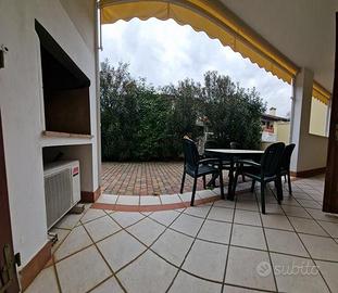 Proponiamo in vendita a Lido di Pomposa, a m. 300 dal mare, bella villetta di recente costruzione, di mq. 70, ubicata interamente al piano terra con ampio giardino di proprietà su tre lati con due posto auto. La sua composizione è la seguente: soggiorno con cucina a vista con affaccio su un ampio porticato su tre lati con barbecue, una camera matrimoniale, una cameretta con due letti singoli e uno spazioso bagno accessoriato con box doccia. L' immobile viene proposto in vendita arredato ed è dotato di riscaldamento autonomo con caldaia a gas metano e impianto di aria condizionata.