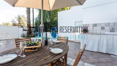 Graziosa villetta con ampio giardino mediterraneo. La struttura gode di una veranda sul fonte attrezzata con mobili da giardino per pranzi e cene all'aria aperta, barbecue a carbone, lavatrice, doccia esterna ed un recinto dove poter custodire in totale sicurezza i nostri amici a quattro zampe. L'interno dell'abitazione gode di un'ampia e spaziosa sala da pranzo con angolo cucina e tv e divano letto matrimoniale, una camera da letto matrimoniale climatizzata ed una camera da letto doppia climatizzata, un bagno con doccia. La Villetta è dotata anche di wi-fi, zanzariere.