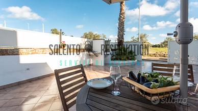 Villetta Federica - Salento Reservation a solo 1 km dal mare limpido e cristallino di Torre Suda. La casa, offre tutti i comfort per una vacanza in totale relax. La zona esterna è caratterizzata da un ampio giardino con area parcheggio e grande porticato attrezzato con mobili da giardino , ingresso indipendente con cancello di pertinenza dal quale si accede all'area esterna esclusiva.