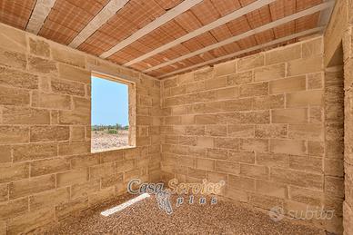 Taviano-Alezio, appena fuori dal centro abitato, proponiamo in vendita rustico di circa 60 mq su terreno di circa 6000 mq. L'unità abitativa è stata realizzata con ottimi materiali su di un importante zattera per evitare la risalita dal terreno. Nel progetto come da allegati in annuncio è presente soggiorno/pranzo, 2 camere da letto, bagno e frangisole esterni. Area solare con vista panoramica.