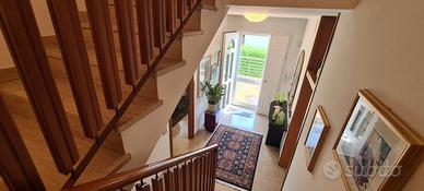 La villetta si sviluppa su tre piani, per un totale di 220 mq. Al piano terra, troverai un ampio ingresso, un luminoso salotto perfetto per rilassarti e ricevere ospiti, una cucina abitabile con sala da pranzo che si affaccia su una terrazza, ideale per cene all'aperto durante le belle serate estive.