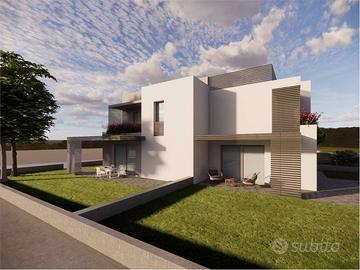 Tecnologia e sostenibilità si fondono in ogni scelta: predisposizione per ventilazione meccanica controllata e domotica, impianto fotovoltaico da 3 kW, serramenti in PVC con vetrocamera basso emissivo e dotazioni di ultima generazione come il videocitofono BTicino. Ogni dettaglio è pensato per offrirti una casa sicura, efficiente e dal valore duraturo.