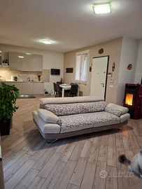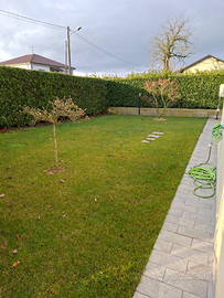 Villetta su due piani con ampio giardino piantumato, sistema di irrigazione e di allarme. Garage e posti auto all interno della proprietà. Riscaldamento a pavimento e stufa a pellet. Finestre in pvc con doppi vetri e zanzariere
