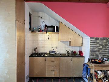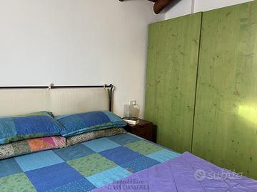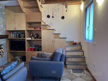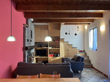 La soluzione è composta da zona giorno al piano terra, con cucina a vista e accesso al primo giardino di proprietà.