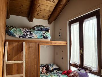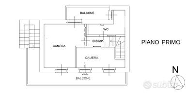 Al primo piano si trovano due camere da letto, un bagno finestrato e due balconi.
