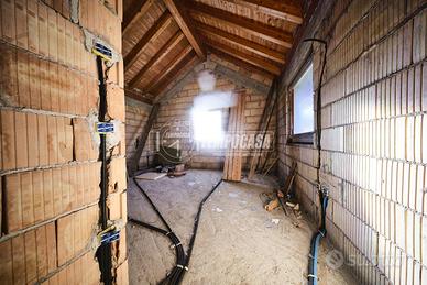 L'abitazione è già dotata degli impianti principali -- acqua, luce, riscaldamento e fotovoltaico -- e rappresenta la base ideale per realizzare una casa moderna, efficiente e completamente personalizzata. Il grande terrazzo che si affaccia sul terreno introduce alla zona giorno, immaginata come un ambiente ampio e luminoso, perfetto per essere modellato secondo le proprie esigenze. Sullo stesso livello è presente una camera con soppalco, un locale particolarmente versatile, oltre a un bagno predisposto.