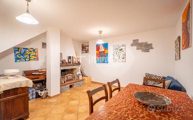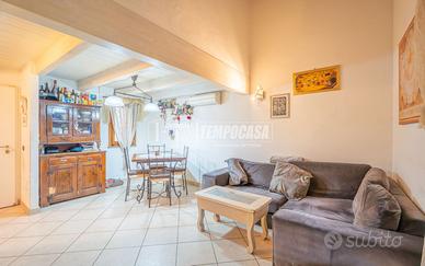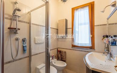 Ingresso sul soggiorno, cucinotto separato a vista e accesso diretto al cortile di oltre 40 mq, in parte pavimentato e coperto, e in parte in erba, con anche un secondo ingresso indipendente;