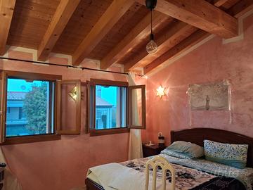 una cameretta con armadio ad incasso e terrazza ,una mansarda con travi a vista (7x4)