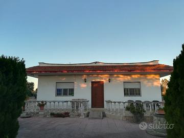 Vendesi villetta indipendente su un piano (rialzato) di circa 130 mq, composta da ampio ingresso, soggiorno e cucina abitabile, 3 camere da letto, 1 bagno ampio con vasca. L'immobile gode di ampio cortile esterno pavimentato, circondato da giardino e terreno annesso alla villa, di circa 3500 mq. Pozzo artesiano e fossa imof adiacenti all'immobile.