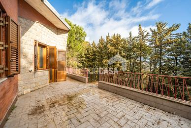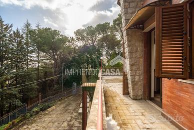 Via S.M. 12, Villaggio Montano, San Martino delle Scale. Villa unifamiliare Mq.76 + dependance di mq 60 corte di pertinenza Mq 1000 circa. (Rif. T 5246) La struttura su un unico livello è dotata di: infissi interni in alluminio-vetrocamera e persiane esterne in alluminio, pavimentazione in gres porcellanato e ceramica, camino; è così suddivisa: ingresso su cucina semi-abitabile, salone-soggiorno, camera da letto, cameretta, servizio e comoda terrazza. Al piano seminterrato si trova il box auto. Al piano terra, adiacente alla struttura principale, si trova una comodissima dependance di mq 60, composta da: ingresso su cucina-soggiorno, camera da letto, cameretta e servizio. Gli immobili hanno beneficiato di una ristrutturazione interna 7 anni fa circa, si presentano in buone condizioni, esigono solamente di una leggera ripresa delle parti compromesse dovute all'inutilizzo. Ricadente all'interno del bosco, a breve distanza dal Monastero dei Benedettini, da Piazza Padre Semeria, questa villetta vi permetterà di godere di ampi spazi esterni a contatto con la natura circostante e trascorrere giornate in assoluto relax dove l'unico rumore udibile è il cinguettio degli uccelli.