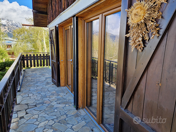 Affittasi chalet indipendente a Sauze d'Oulx Piemonte con due stanze da letto, una cucina, un bagno, un soggiorno e garage con molti posti auto anche esterni.