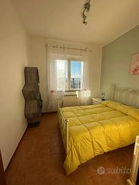 Cucina in open-space con poltrona letto , camerina , camera padronale e bagno .