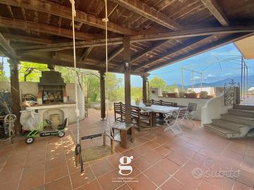 L'esterno inoltre, vanta un ampio terreno con ulivi, viti e alberi da frutto, creando così un'oasi di tranquillità. La villa è completata da un comodo parcheggio. Una soluzione abitativa perfetta per chi cerca comfort, spazi verdi e privacy.