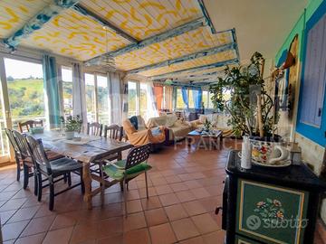 La struttura si sviluppa su 3 livelli ed è attualmente in parte adibita ad attività ristorativa, comprensiva di quattro ampie sale con cucina e servizi, ed in parte ad uso di abitazione principale con ulteriori locali da poter adibire all'attività di affittacamere.