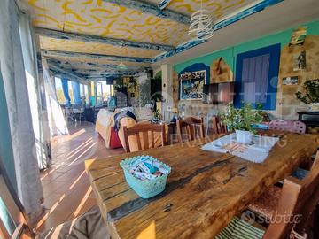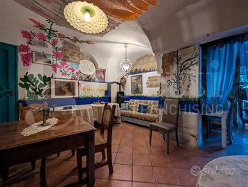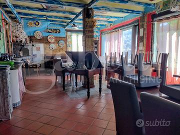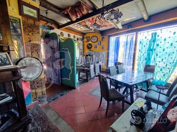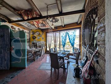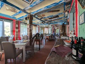 La struttura si sviluppa su 3 livelli ed è attualmente in parte adibita ad attività ristorativa, comprensiva di quattro ampie sale con cucina e servizi, ed in parte ad uso di abitazione principale con ulteriori locali da poter adibire all'attività di affittacamere.