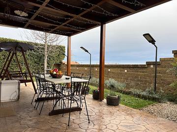 CITTA' SANT'ANGELO - Via Crocifisso - In contesto residenziale riservato e tranquillo, proponiamo in vendita una deliziosa villetta su due livelli, dotata di ingresso indipendente e giardino privato di ca. 120 mq con splendida vista mare che offre la possibilità di vivere gli spazi esterni all'insegna del comfort e del relax. Al piano terra troviamo la zona giorno composta da: ingresso, accogliente soggiorno con camino e accesso diretto al giardino, cucina abitabile dotata di un pratico e funzionale ripostiglio e un bagno. Una scala interna rivestita in parquet conduce alla zona notte costituita da: tre camere da letto, una delle quali adibita a studio e dotata di balcone, un ampio bagno con vasca e un comodo ripostiglio utilizzato come lavanderia, completo di sanitari. L'immobile è dotato di cappotto termico, sistema di climatizzazione, impianto di allarme, zanzariere e tapparelle elettriche. Si presenta in condizioni impeccabili, con estrema cura per ogni dettaglio. È la soluzione perfetta per chi desidera comfort, riservatezza e serenità, senza però rinunciare alla comodità di una posizione strategicamente collegata. A pochi minuti dallo splendido borgo di Città S. Angelo e a pochi minuti di auto dal mare.